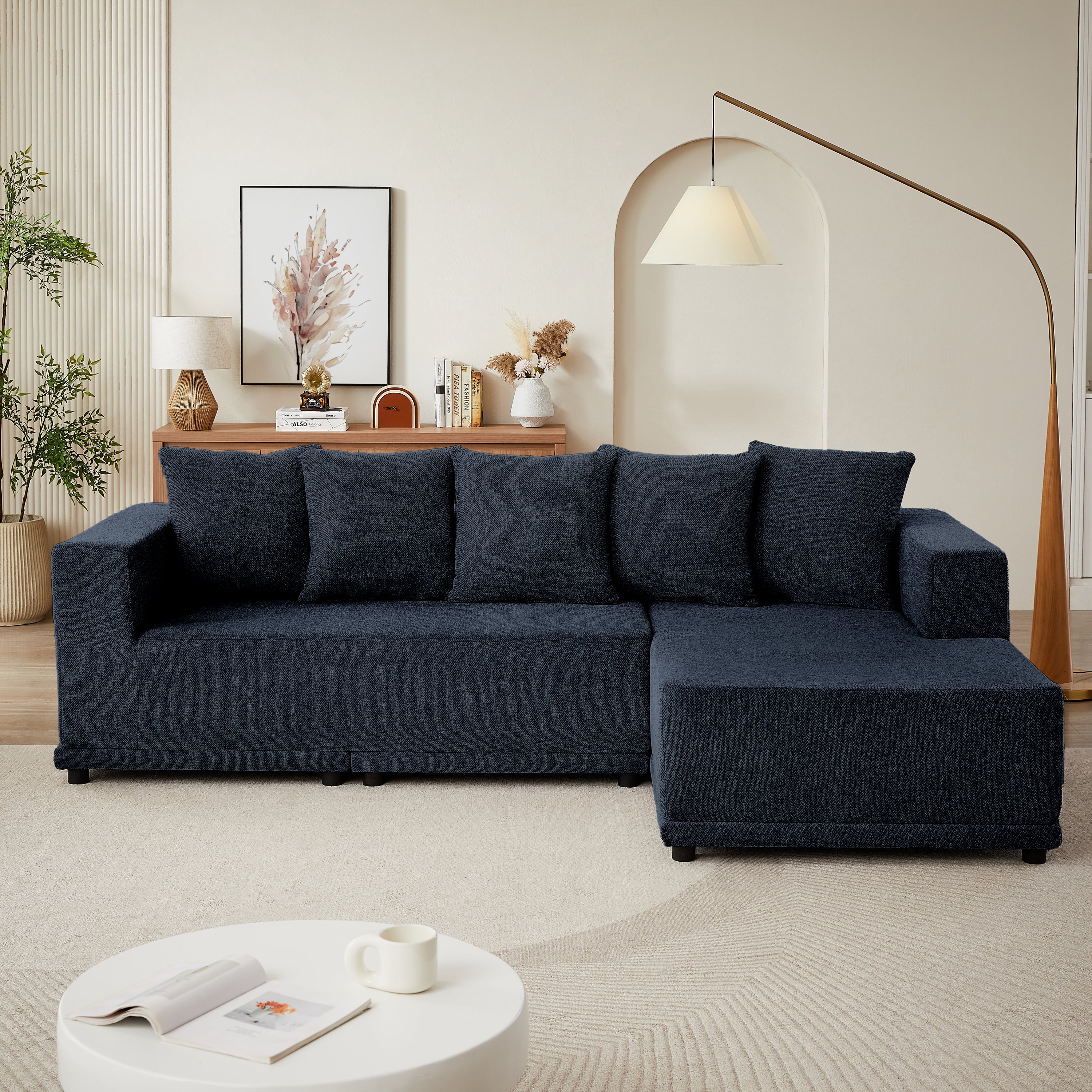 Chenille L-Shaped Sectional Sofa Set,Minimalist Style Modular Sectional Sofa, Luxury Chenille Fabric Cloud Couch for Living Room